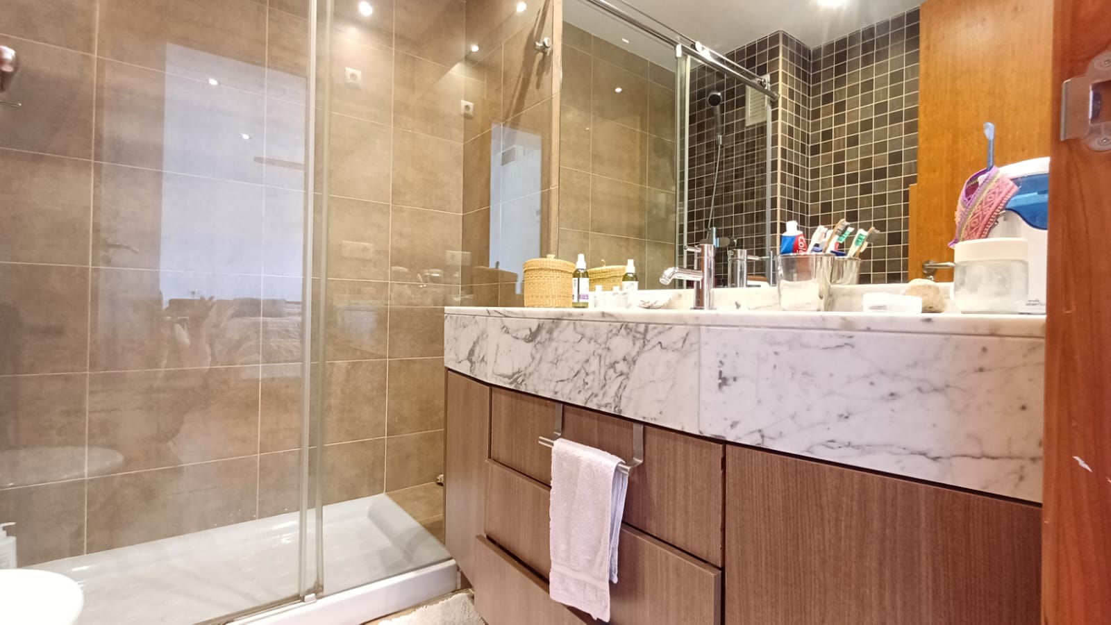 En la planta baja encontramos un amplio y luminoso salón- comedor con una moderna cocina de concepto abierto totalmente equipada, con zona de lavadero y un aseo de cortesía.